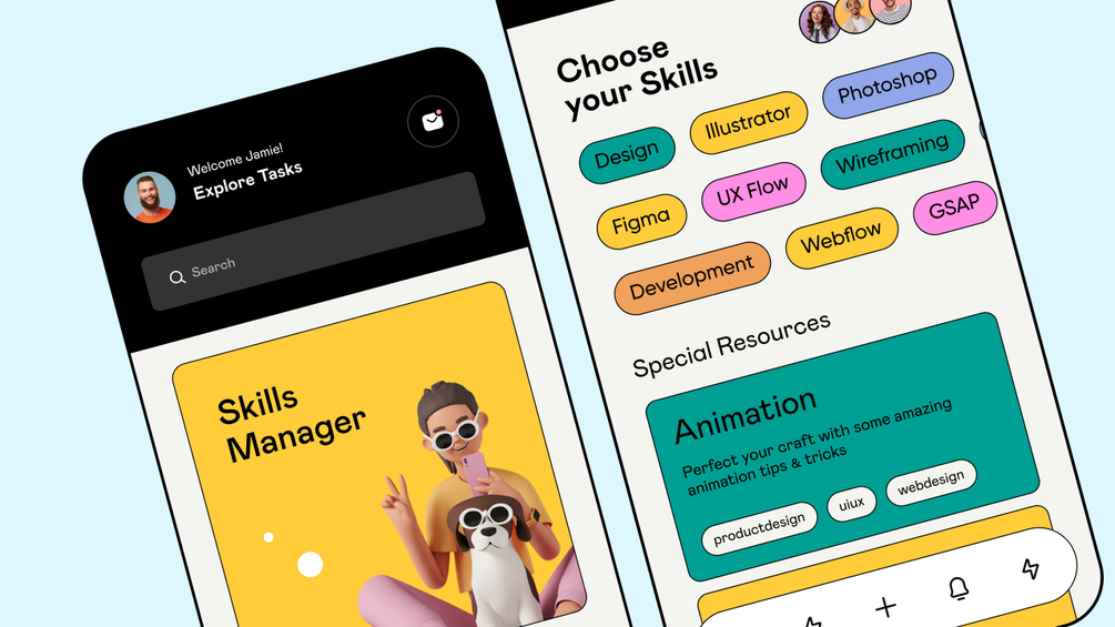 Two well designed screens of concept app uiux. You can play & share your creativity with it.